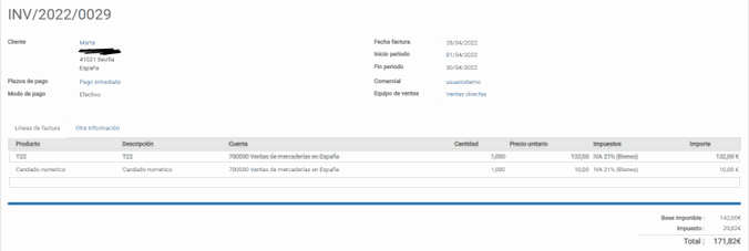 Si tenemos una factura en estado abierta, por ejemplo: